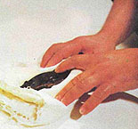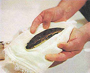 Сцеживание перезрелой икры у желтокрылки (Cottocomephorus grewingki)