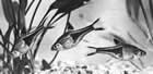 Rasbora heteromorpha (расбора гетероморфа, или расбора-арлекин). Эта рыбка длиной 5см пришла к нам из Малайзии. Мы выделили ее из группы других расбор, поскольку она иначе нерестится. Это одна из самых миролюбивых и прелестных аквариумных рыб, полностью заслужившая свою огромную популярность. Передняя часть тела серебристая, задняя – темно-красная с большим бархатисто-черным треугольником. Спинной и хвостовой плавники красные с белым окаймлением, первые лучи анального плавника также красные. Под лучами солнца у рыбы появляется удивительно красивый фиолетовый отблеск. Из-за одинаковой окраски отличить самок от самцов удается только в нерестовый период по отяжелевшим брюшкам. В целом же у самок более полное тело, треугольник на задней части тела выражен слабее.