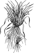 Состоит из пучка или кустика очень красивых толстых листьев с углубляющимся в дно озера или пруда мочковатым корнем. Листья тупые, равнокрайние, пустые, дудчатые. Величина их от 2 до 3 дюймов, а цвет ярко-зеленый. Листья расположены спиралью, которая, однако, у большинства экземпляров не заканчивается, и до цветения при надломе выпускают из себя млечный сок.