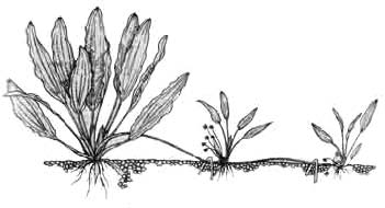 Надо отметить, что при образовании дочерних растений на цветочных стрелках некоторые виды эхинодорусов значительно замедляют рост, мельчают и на два-три месяца теряют декоративность. Отчетливо выражено это свойство у эхинодорусов озирис, большой, Горемана. В меньшей степени оно заметно у эхинодорусов селловиануса, вертикального, Ашерсона и некоторых других при содержании их в аквариуме. Обрезая цветоносы, можно сохранить декоративные качества этих интересных растений. После образования дочерних растений на цветоносе еще до формирования у них корневой системы всю цветочную стрелку срезают и помещают в отдельную кювету, прижав к грунту шпильками. Такая стрелка должна располагаться под сильным светом на небольшой глубине. Дочерние растения развиваются очень медленно, однако такой способ позволяет сохранить декоративные качества материнского куста и получить новые растения.