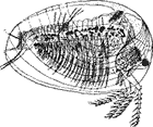 Маленький, не больше полутора сантиметров в длину, серенький рачок (походит несколько на тысяченожку или на мокрицу), имеет четыре щупальца и 7 пар ног, с помощью которых быстро ползает по подводным камням и растениям. Двигаясь по ним, он то и дело потрясает находящимися под хвостом пластинками, которые служат для него главными органами дыхания — как бы жабрами.
