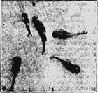 На рыб же со временем они совсем перестали обращать внимание; не обращали даже внимания, когда вместо небольших фундулусов помещены были к ним хаплохилусы и особенно пара Pelmatochromis и Pantodon. Только, живя с последними, которые плавают обыкновенно близ поверхности, они изменили несколько свою тактику и в противоположность тому, как они держались при фундулусах, перешли на дно или поблизости его. Часто плавали также то вверх, то вниз близ стекол аквариума, причем, согнутые обыкновенно, тут выпрямлялись и двигали быстро всеми находящимися под хвостом лапками.
